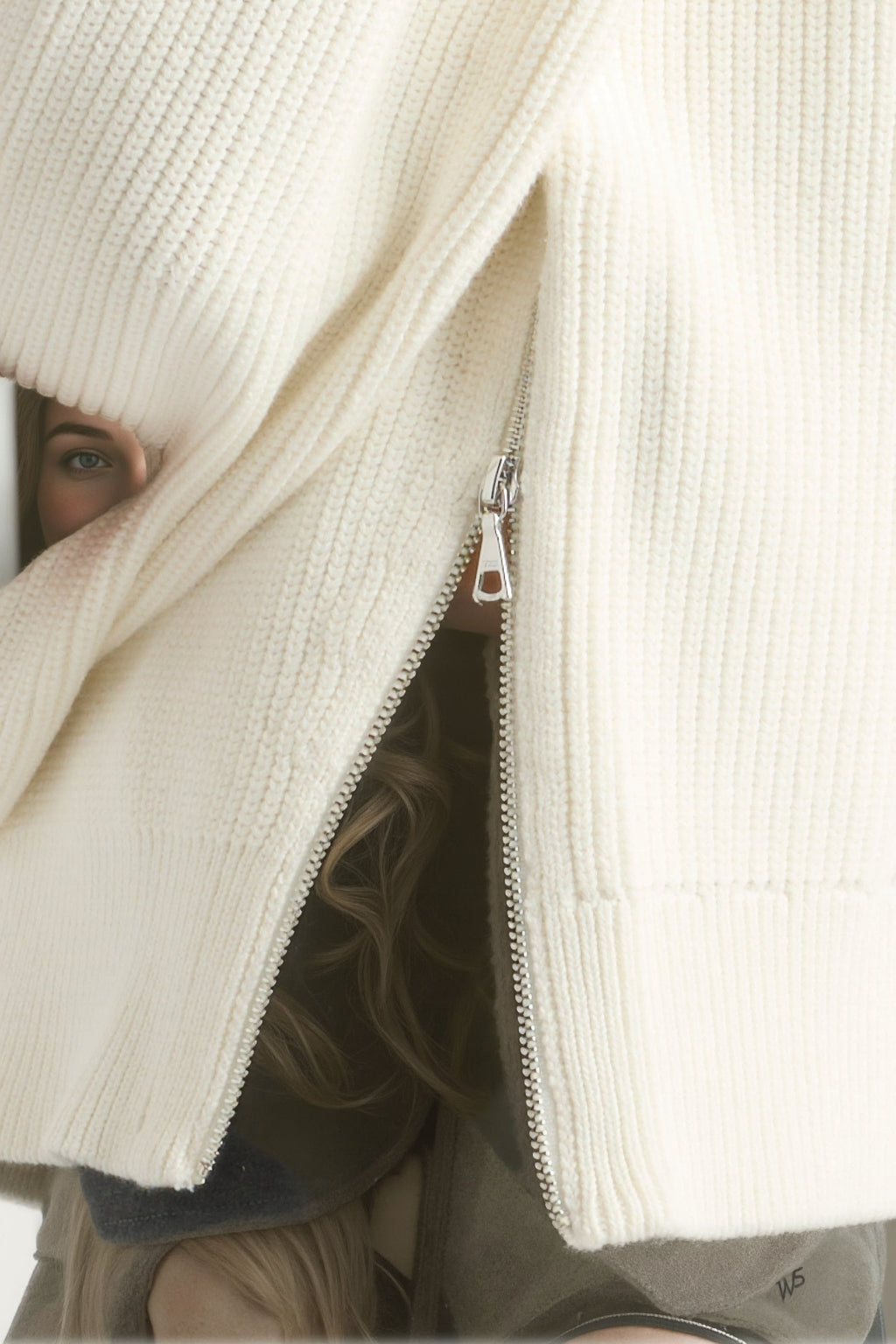 Finished with a functional side zip for versatile styling, this piece brings comfort and quiet confidence to cooler days.